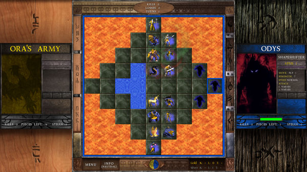 Inspired by chess, but adding combat that YOU control, Archon was the original Battle Chess. You must try to outmaneuver your opponent using teams of fantasy creatures or monsters in this epic struggle of Light and Dark. On the chess board, when you challenge a piece, you are teleported into a Combat Arena where you fight in REAL-TIME until only the victor emerges to claim the square on the chess board. Conquer your opponent by defeating all of their pieces on the chess board or claim all the Power Squares for a quick victory! You can play Free-For-All mode, where it's everyone for themselves, or play using teams and gang up on your opponents pieces in battle (2 vs. 1.)